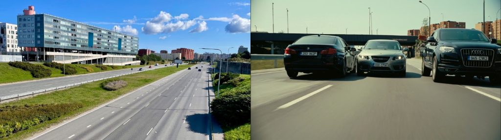 The thrilling car chasing scene, where the Protagonist and Neil hijack a transport truck to rob the mysterious metallic device, was shot in Laagne tee. Unfortunately, it quickly became a nightmare of a car chase, with inverted time and a gunfire exchange. Luckily, all the cars seemed to be going in the right direction today. Public transport from the city centre to the Estonian Art Museum (KUMU) runs along this street, so you can enjoy the same view.