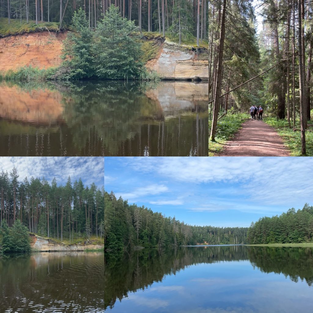 We left Tartu early in the morning, full of excitement and snacks. Our first stop was Taevaskoja, about a 40-minute drive from Tartu. The place looked like it was taken out of a postcard: tall pine trees, golden sunlight, and a quiet river flowing through the forest. We started with a boat ride that felt completely different to any other I’ve been on. The water was calm, the reflections were clear, and our guide told us that kingfishers are often seen here. We kept looking for one the entire time, but sadly, didn’t spot any (I hope you will). Still, the peaceful silence of that ride was its own kind of magic.